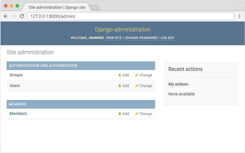 To include the Member model in the admin interface, we have to tell Django that this model should be visible in the admin interface.