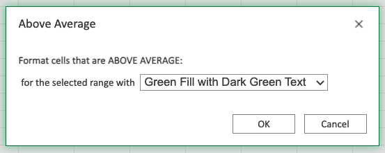 The "Above Average" rule will highlight cells with one of the appearance options based on the cell value being the above the average value in a range.