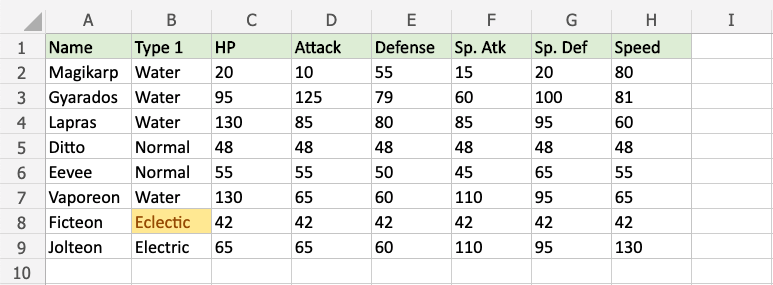 Let's see what happens if we add a fictional pokemon with a new Name and Type: