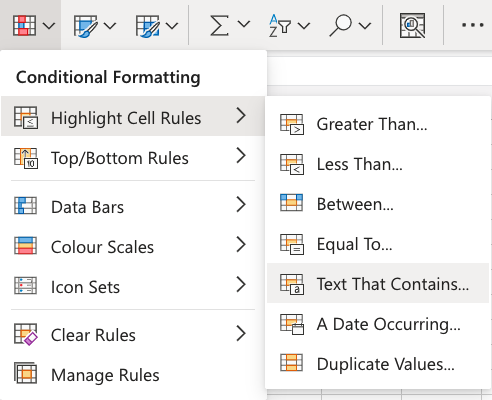 Highlight Cell Rules - Text That Contains