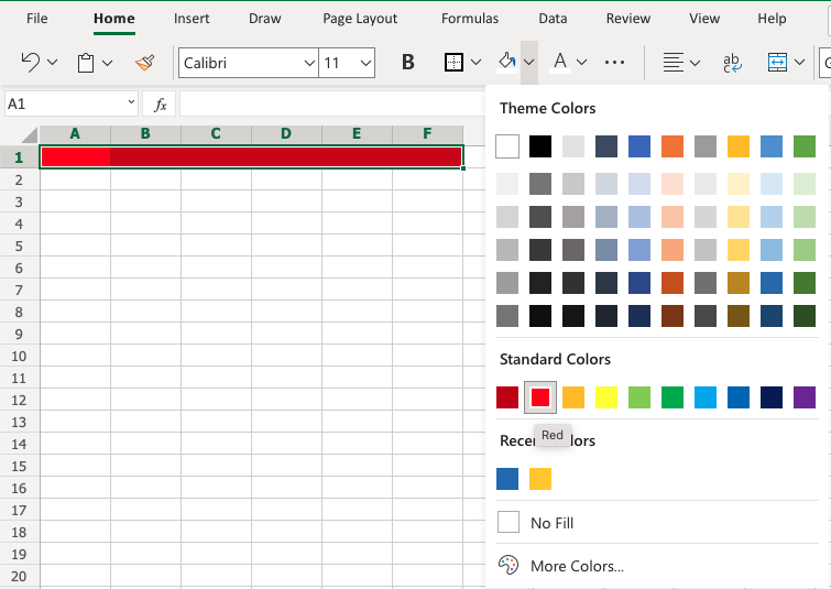 - Click the Fill Color button