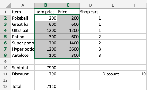 In the example we have cells that represent prices, which can be formatted as Currency.