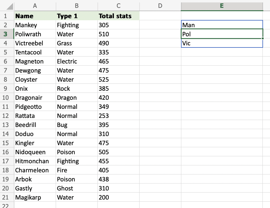 A2:A4) and define the length of characters you want to retrieve, using a,as a delimiter (A2:A4,3) - Hit enter