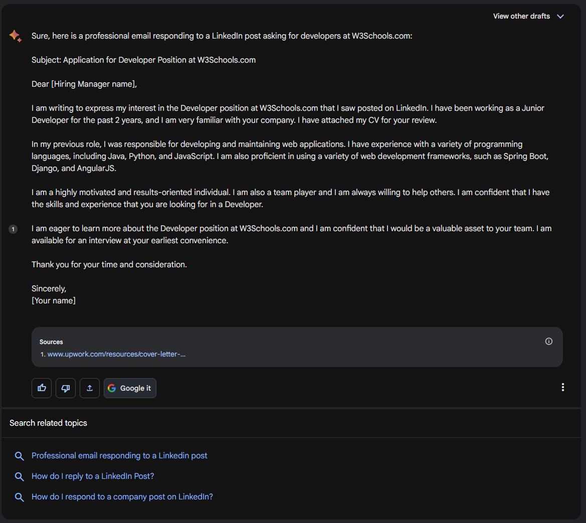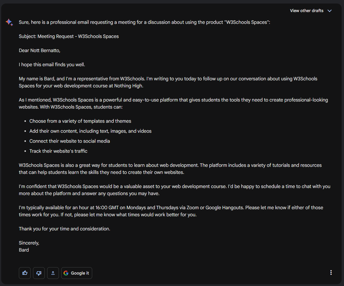 Now, you can continue to refine this draft and make it your own. But Bard gave us a good starting point.