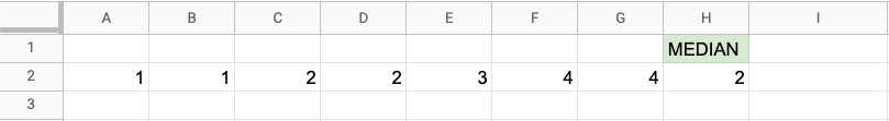 The MEDIAN function is a premade function in Google Sheets, which returns the middle value in the data.