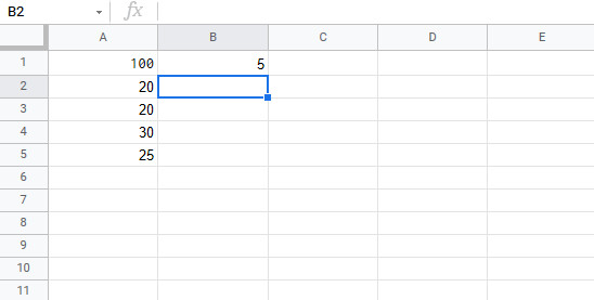 Let's have a look at an example where we subtract B1(5) from the range A1:A10 using absolute reference and the fill function.
