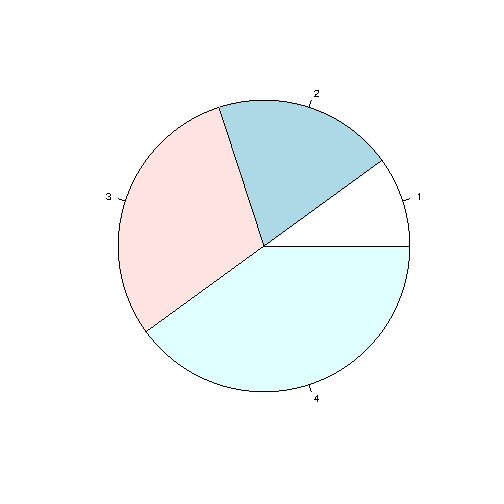 As you can see the pie chart draws one pie for each value in the vector (in this case 10, 20, 30, 40).